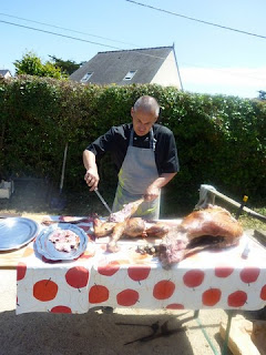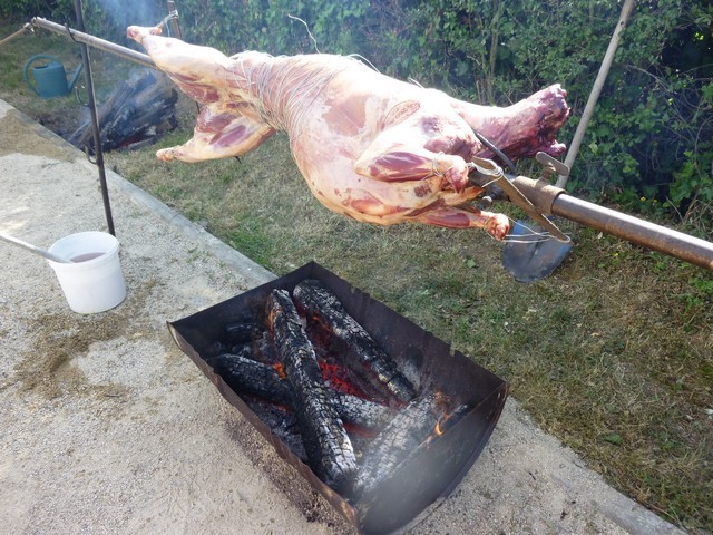 La cuisson rosée des gigots indique un timing parfait, la découpe commence, elle durera plus d’une heure et les convives viennent s’avitailler souvent, c’est bon signe!