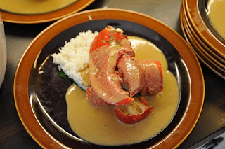 A l’apéritif, quelques toasts de sardine marinée et beurre de coriandre, suivies d’un Wok couteaux et chorizo