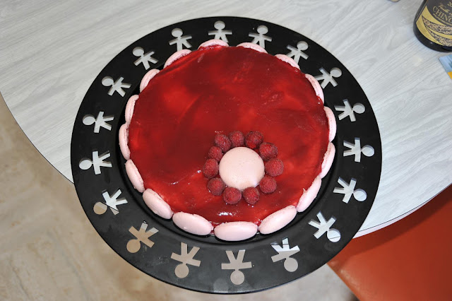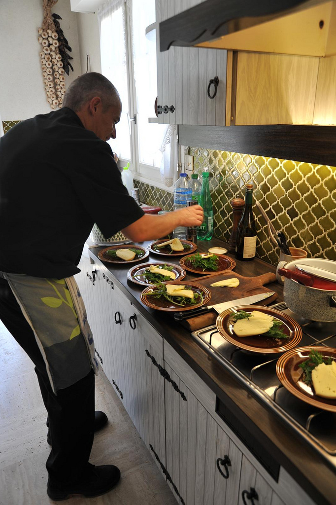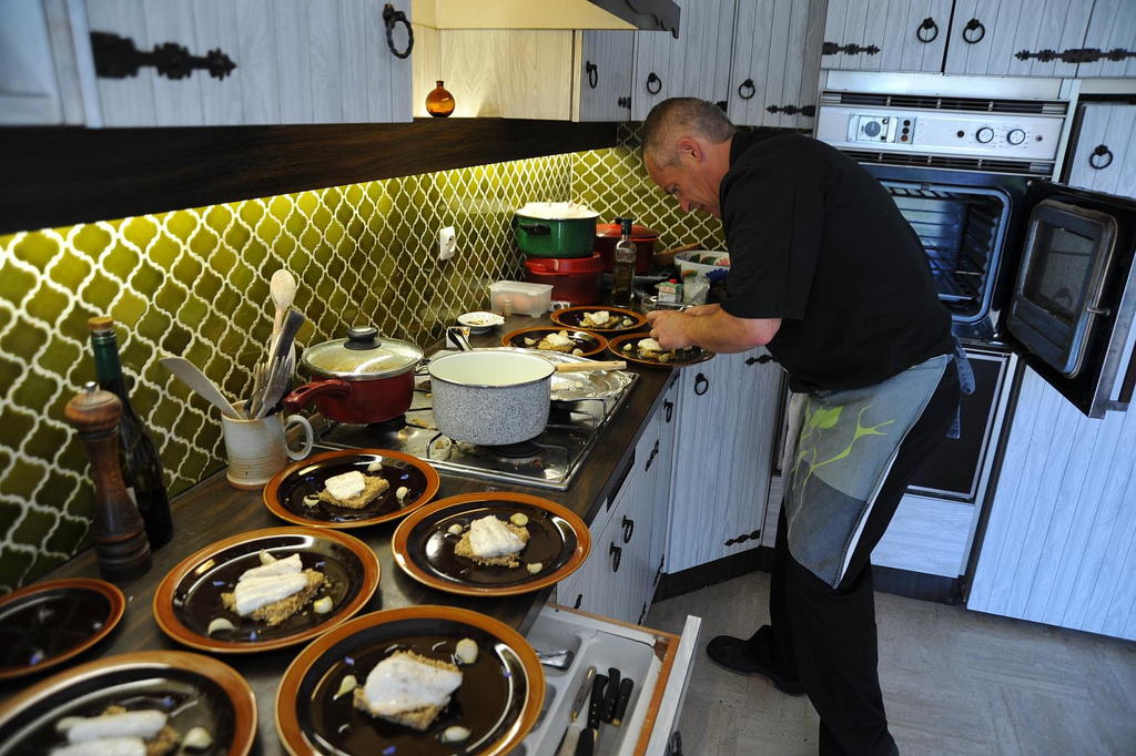 Une fois le lettrage fait ( on n’a pas tous les jours 80 ans ! ), et les bougies soufflées, c’est au Chef que revient l’honneur de portionner le dessert.