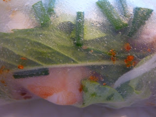 Les crevette sont décortiquées, la carapace et la tête séchées au four puis congelées et réduites en poudre  qui me sert de panure.